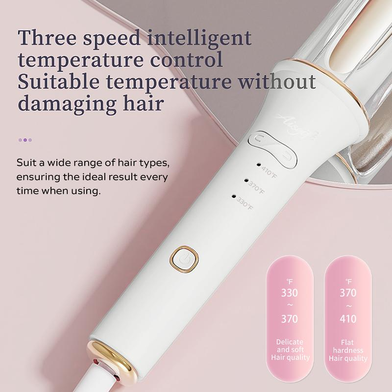 2.3 Temperature: Our Auto curling iron is available in 3 temperature options (320°F to 430°F) to suit a wide range of hair types, ensuring the ideal result every time when using. The hair curling wand also offers a two-way rotation function, allowing you to easily switch the direction of the left and right curls, whether you like big, loose waves or small, tight curls. But this automatic curling iron is not very suitable for people with short hair.