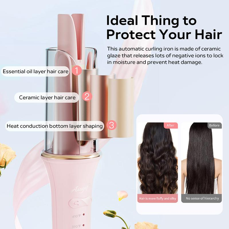 AISGIFT Automatic Hair Curling Iron,Rotating Hair Curler for Home, Negative Ion Automatic Hair Curl Wand, with 3 Modes Temperatures for Women Hairstyles, Valentine’S Day Gift, Automatic Hair Curler, Hair Products
