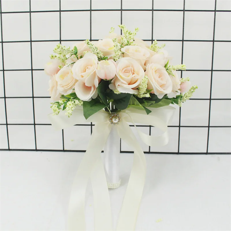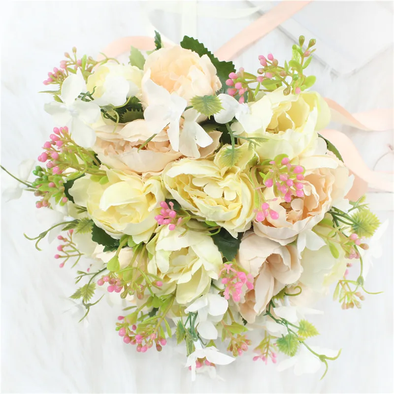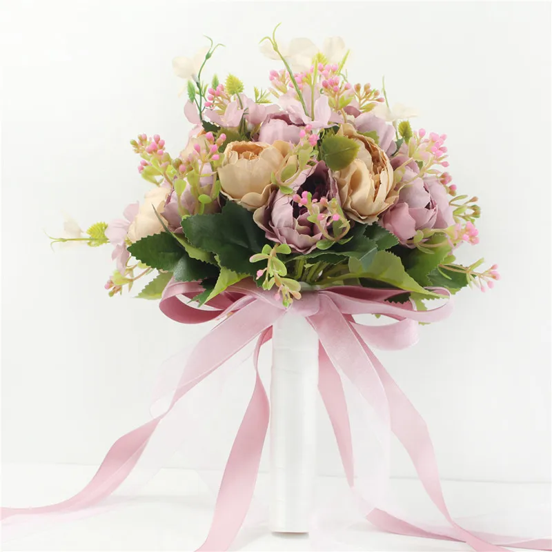 Bride Wedding Bouquet Bridesmaid Holding Bouquet Wedding Supplies Artificial Silk Rose Peony Pink Flower Table Decoration