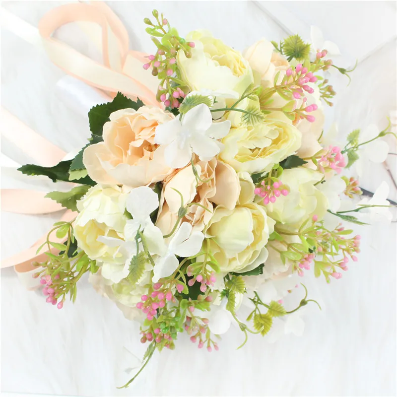YO CHO Bride Wedding Bouquet Bridesmaid Holding Bouquet Wedding Supplies Artificial Silk Rose Peony Fake Flower Table Decoration