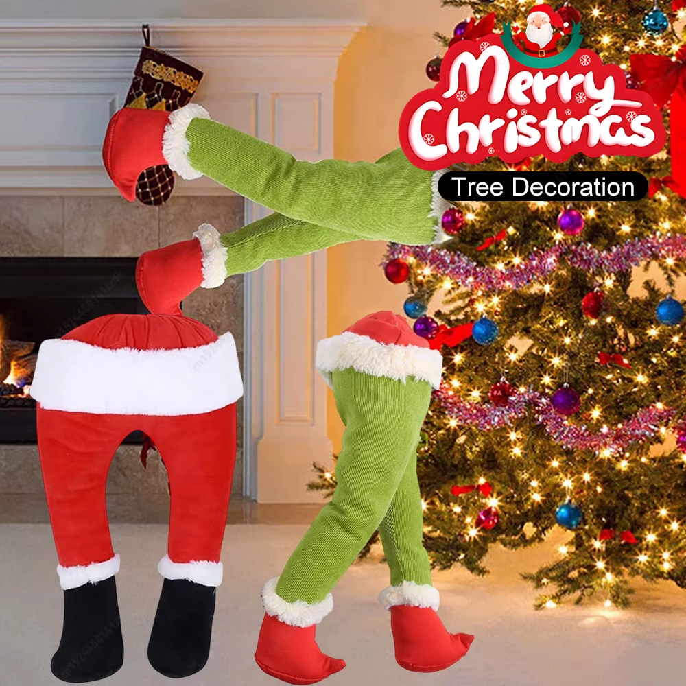 Christmas Elf/Santa Legs Christmas Tree Decoration Stuffed Legs Stuck Tree Topper Decoration Xmas Holiday Indoor Outdoor Decor Party Ornaments