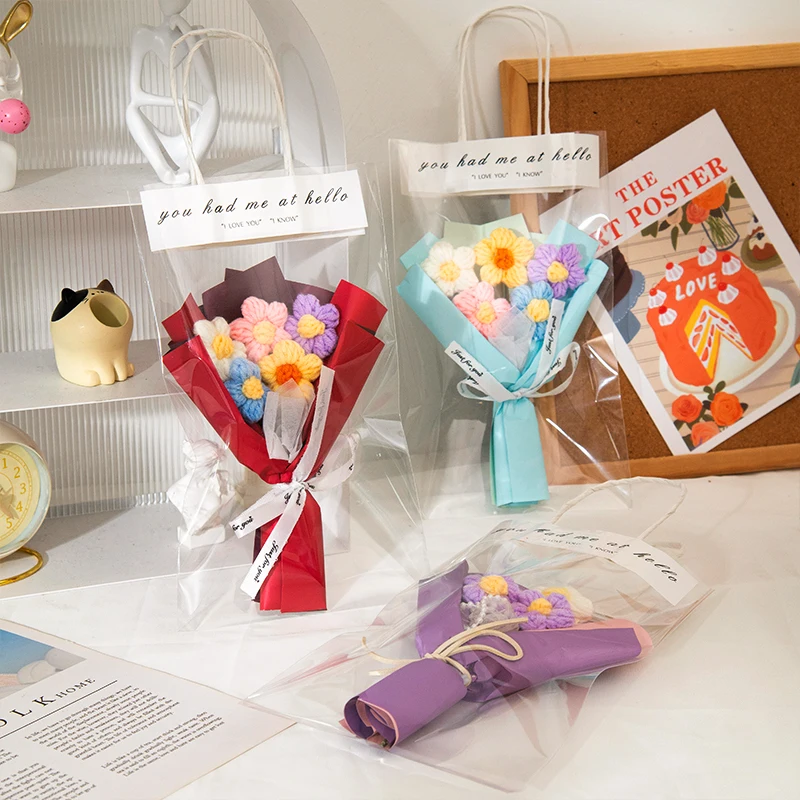Crochet Bouquet Rose Sunflower Handmade Artificial Knitted Flower Valentine’S Day Anniversary Wedding Birthday Gift Home Decor