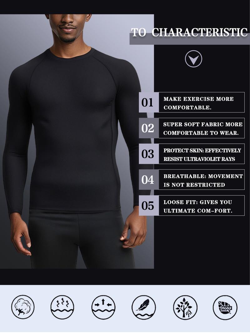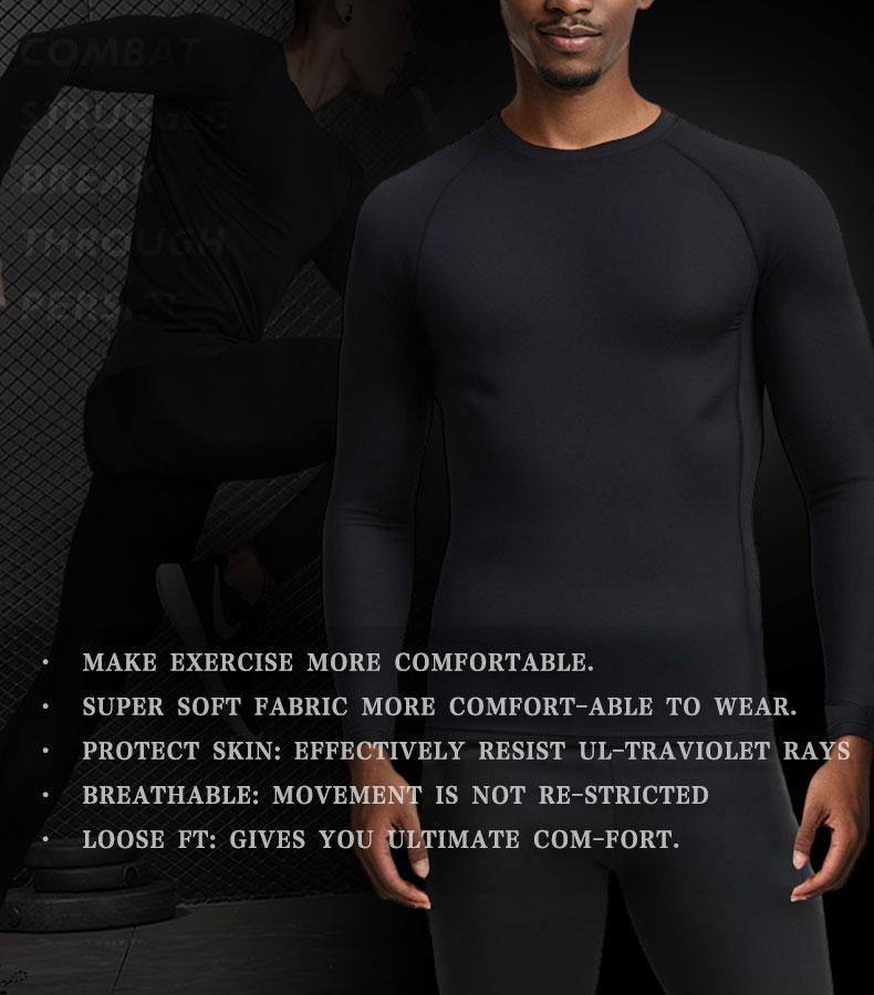 Four-Piece Men’S Thermal Underwear Long-Sleeved Suit, Sports Outdoor Thermal Underwear Tops and Pants Men, Autumn, Winter Warm Sports Pure Black Suit Clothing Menswear Polyester Stretch Stylish Plain