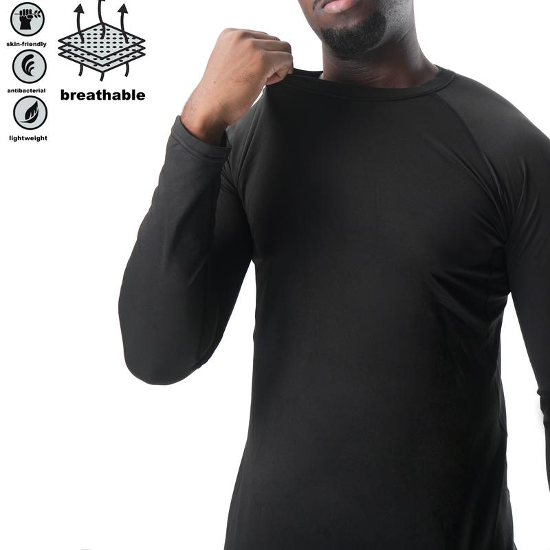 Ideal for outdoor adventures, this thermal set keeps you warm in the cold outdoors. The material, 92% polyester and 8% spandex, offers excellent fit and great stretchability. It is breathable and moisture-wicking, keeping you dry and comfortable. Odor prevention prevents the growth of odors.