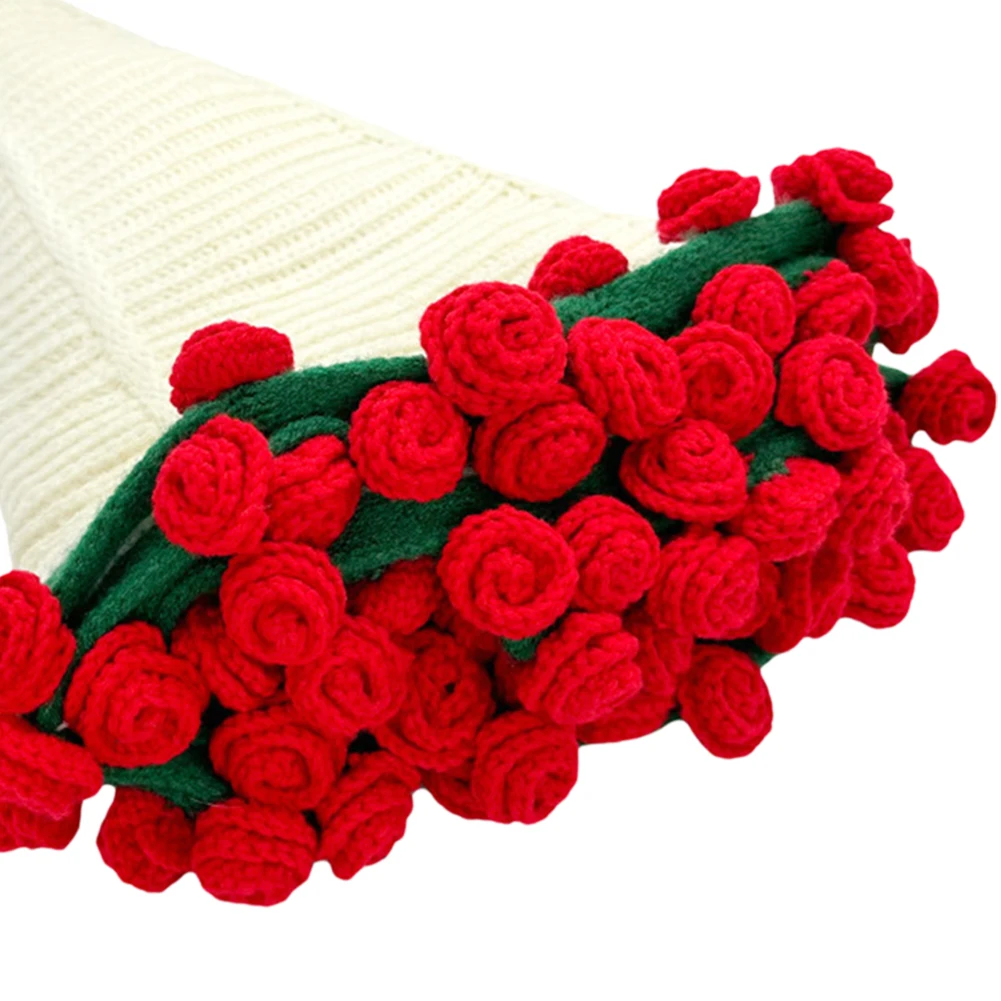 Handmade Crocheted Blanket Breathable Hand Knitted Rose Blanket Wear Resist Soft Knitting Throw Blankets for Friend Gift