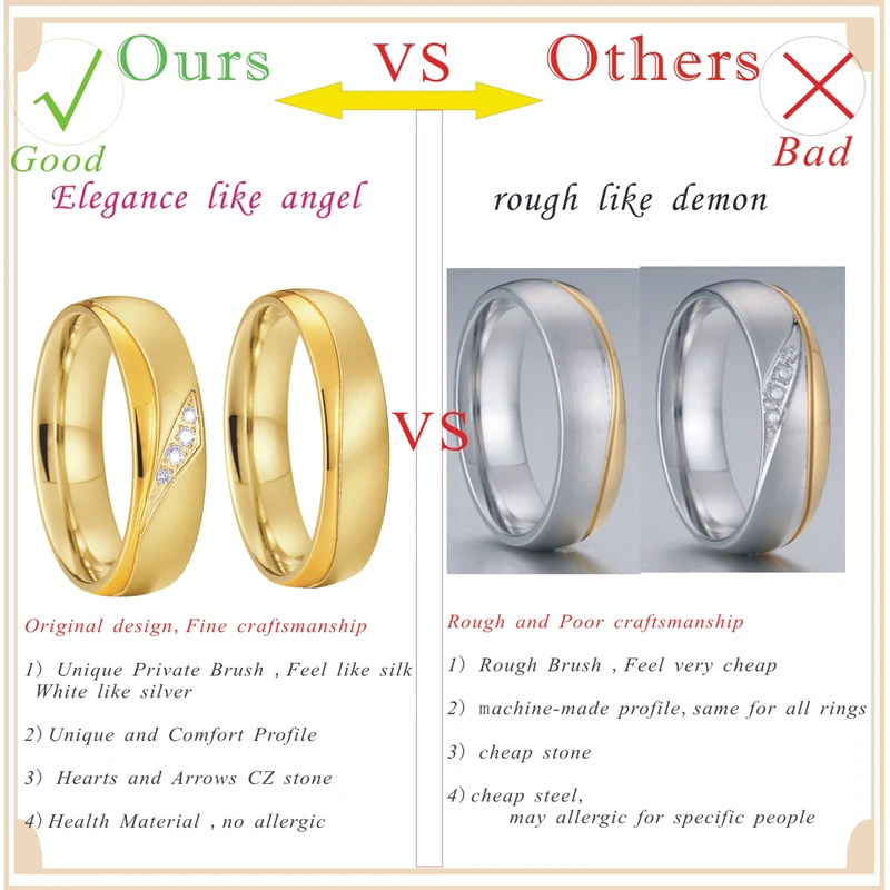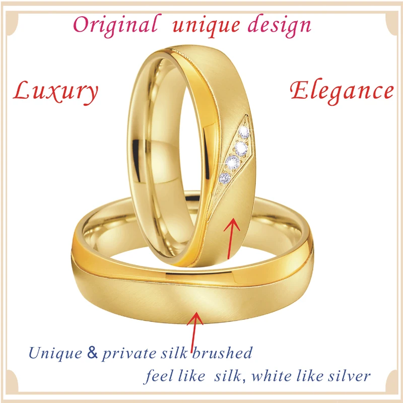 High Quality Western Wedding Rings Set for Couples African 18K Gold Plated Stainless Steel Jewelry Lovers Alliance 1 Pair