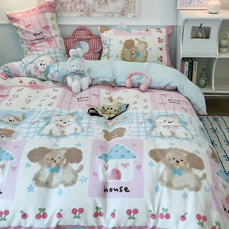 Spring Bedding Set Fashion Cartoon Kids Single Double Queen Size Flat Sheet Duvet Cover Pillowcase Bed Linens Home Textile