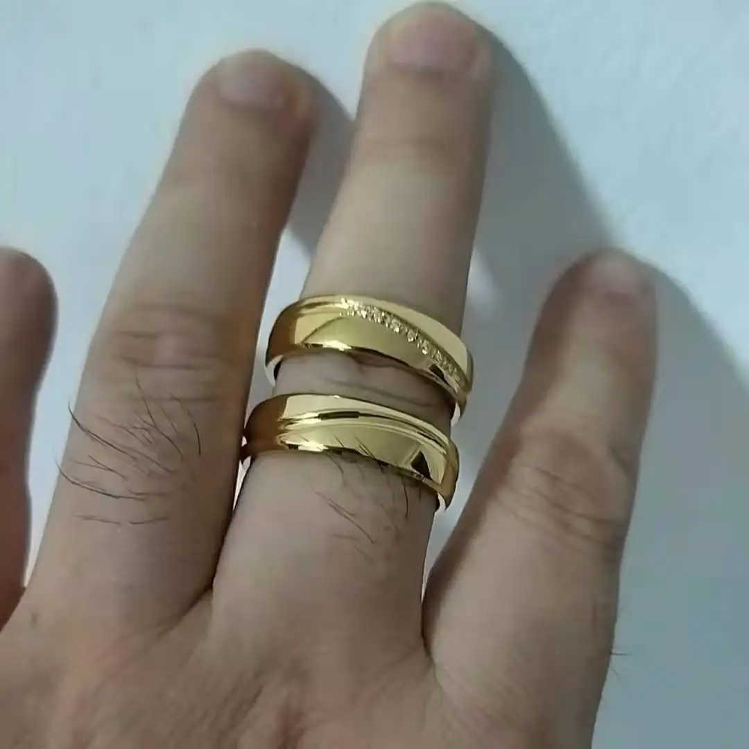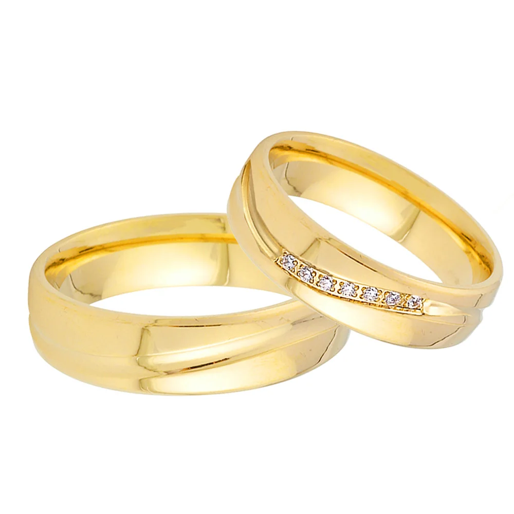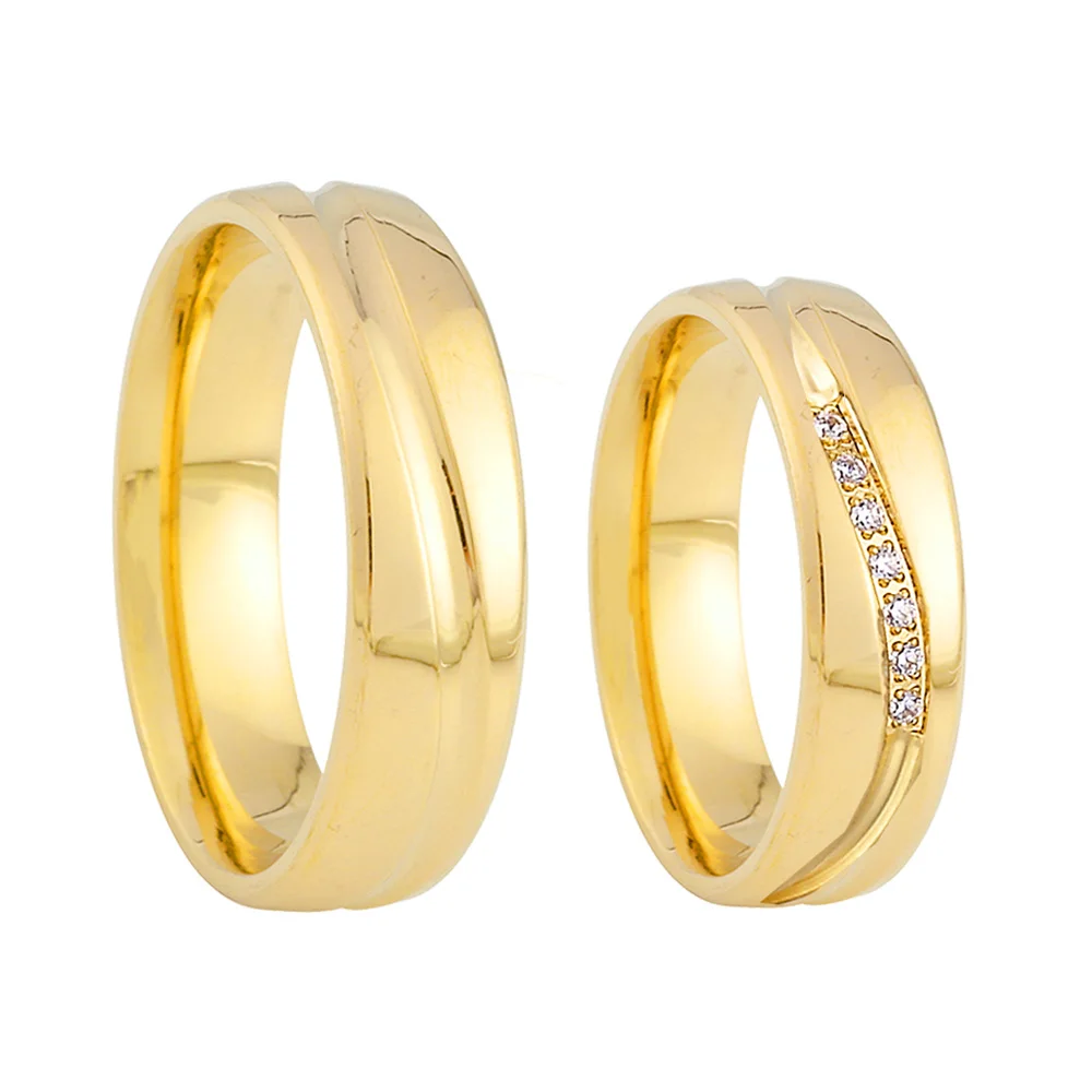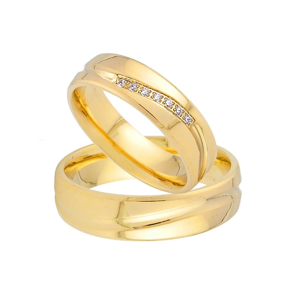 Wedding Rings Couple Sets for Men and Women Lovers Alliance Shiny 1 Pair 14K Gold Plated Stainless Steel Jewelry Marriage Ring